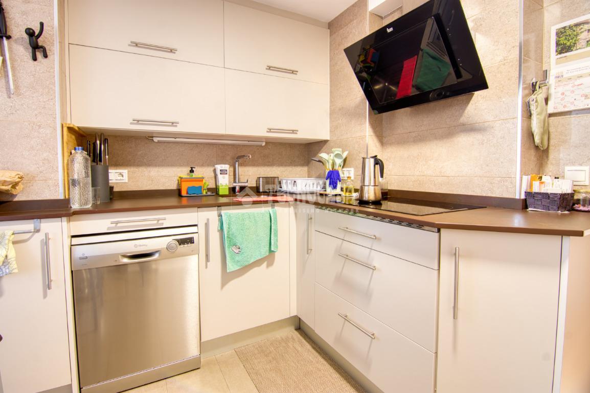 La cocina, reformada con mimo, está totalmente equipada y dispone de lavavajillas, campana extractora moderna y ventana, que aporta ventilación y luz natural.